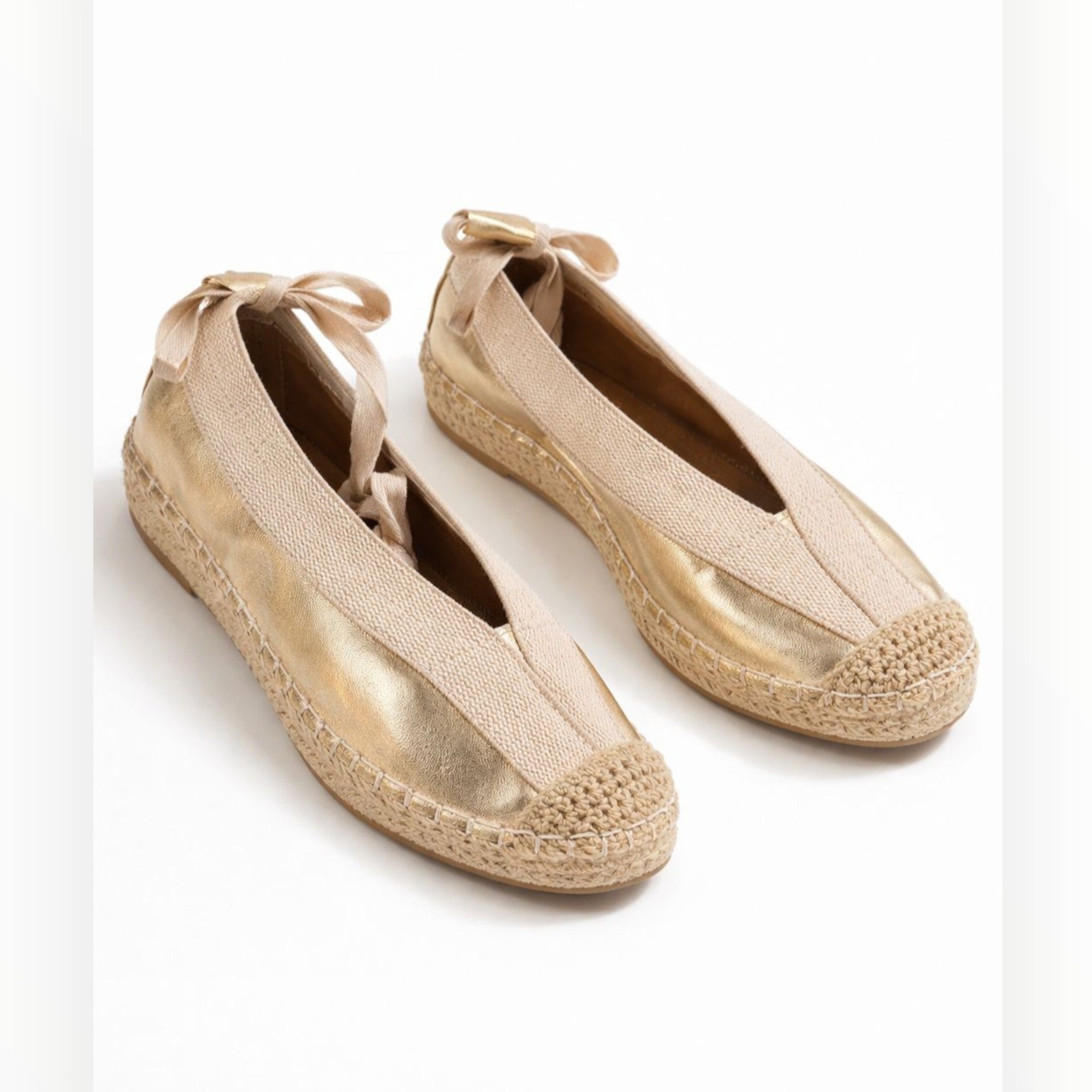 Descripción: Alpargata de estilo valenciano con un diseño moderno. Están confeccionadas en lona, llevan suela de esparto o yute trenzado, puntera con refuerzo y lleva cuerdas para atar a la pierna.