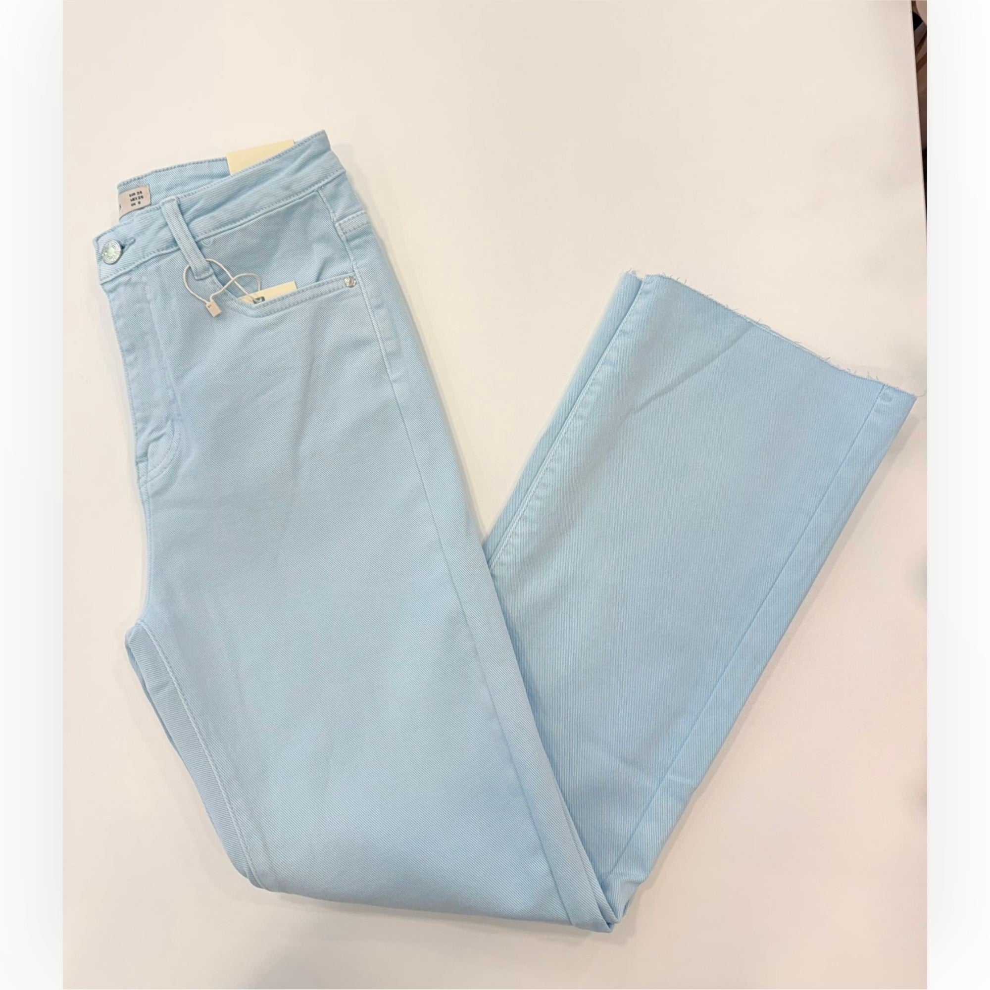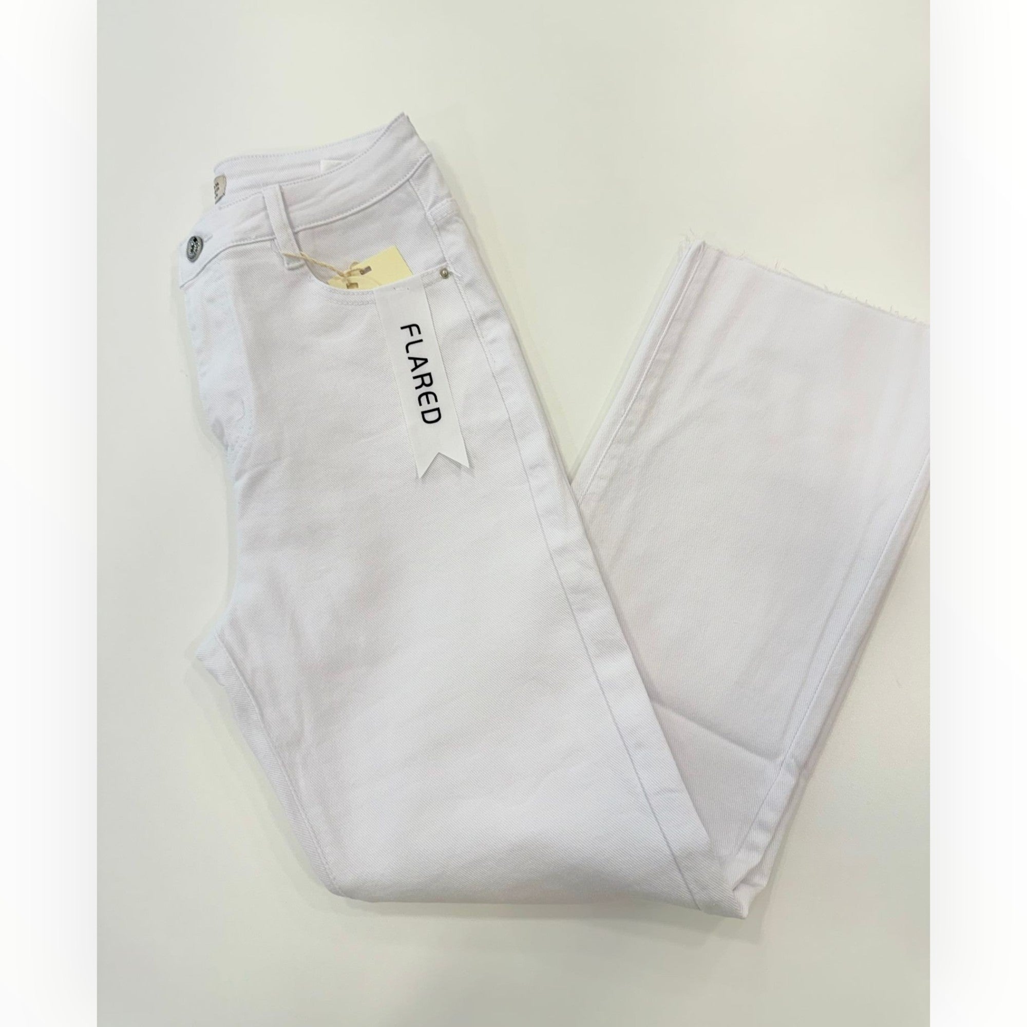 Descripción: Pantalón de corte flared que se ajusta a la cintura y caderas, se ensancha ligeramente desde la rodilla hacia el tobillo, creando una silueta cómoda y estilizada. Este modelo incorpora elástico en su tejido, lo que convierte en una opción muy cómoda. Cuenta con el diseño tradicional de cinco bolsillos, trabillas para el cinturón y cierre con botones y cremalleras.